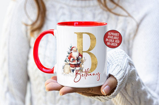 Personalized Christmas Initial Mug, Custom Letter Coffee Cup, Holiday Name Mug Gift, Xmas Hot Cocoa Cup, Monogram Christmas Mug
