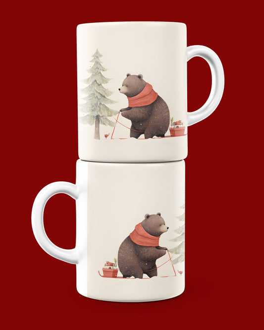 Festive Bear Christmas Mug – Cozy Holiday Sipper with Bear, Christmastree- Festive Christmas Mug - decor - christmas gift - vintage