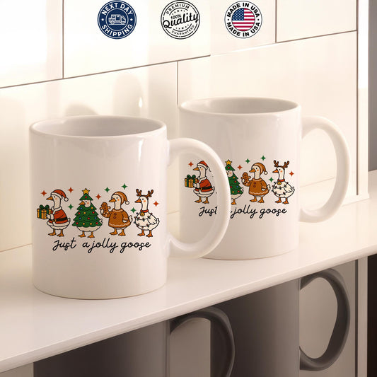 Just A Jolly Goose Mug, Xmas Gift Coffee Mug, Holiday Goose Mug, Merry Goosemas Coffee Mug, Christmas Humor Coffee Mug, Duck Christmas Mug