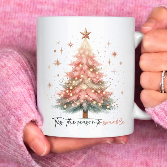 Pink Christmas Tree Coffee Mug: Holiday Drinkware Gift