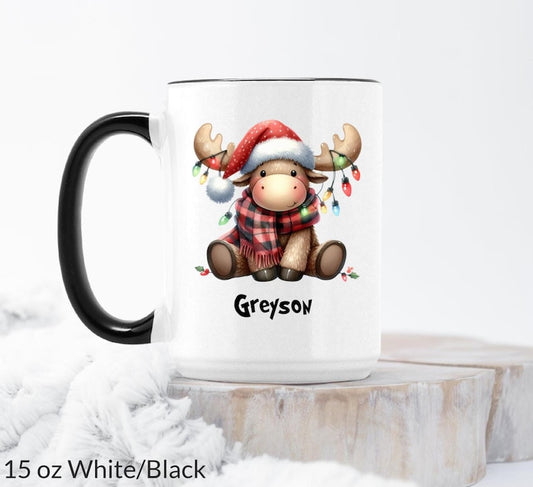 Personalized Name Written Mug, Custom Reindeer Name Mug, Christmas Gift, Cute Reindeer Christmas Mug, Gift for Family, Cute Rudolph Tea Mug
